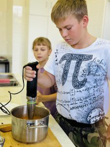 Na druhé lekci jsme se pustili do jedné z nejoblíbenějších dětských klasik – rajské polévky. Děti ji zbožňují, a proto jsem ji zařadil i do našeho programu, aby si mohly vyzkoušet, jak se tahle dobrota připravuje.