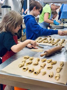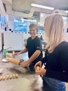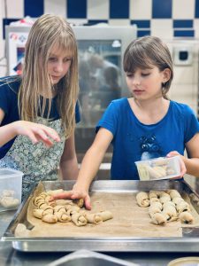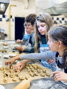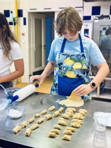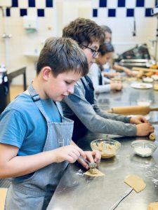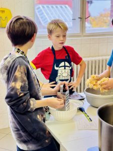 Čtvrtá lekce byla ve znamení tradice. I když se snažím každý rok zařazovat nové recepty, svatomartinské rohlíčky prostě nesměly chybět! Tentokrát jsme připravovali dvě varianty náplní – ořechovou a makovou, aby si každé dítě našlo svého favorita. Pekli jsme tentokrát ve velké školní kuchyni, kde máme přece jen více prostoru a pohodlí než v menších kuchyňkách. Děti si tak odnesly domů pořádnou dávku rohlíčků – věřím, že jste si na nich s chutí pochutnali!