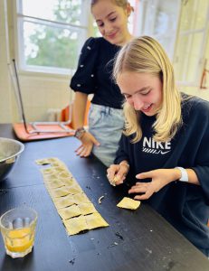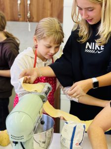 K ruce nám byly strojky na těstoviny, které jsou součástí robotů KitchenAid, takže nám práce šla krásně od ruky. Děti si vyzkoušely válení, plnění i tvarování těstovin – a výsledky stály za to!