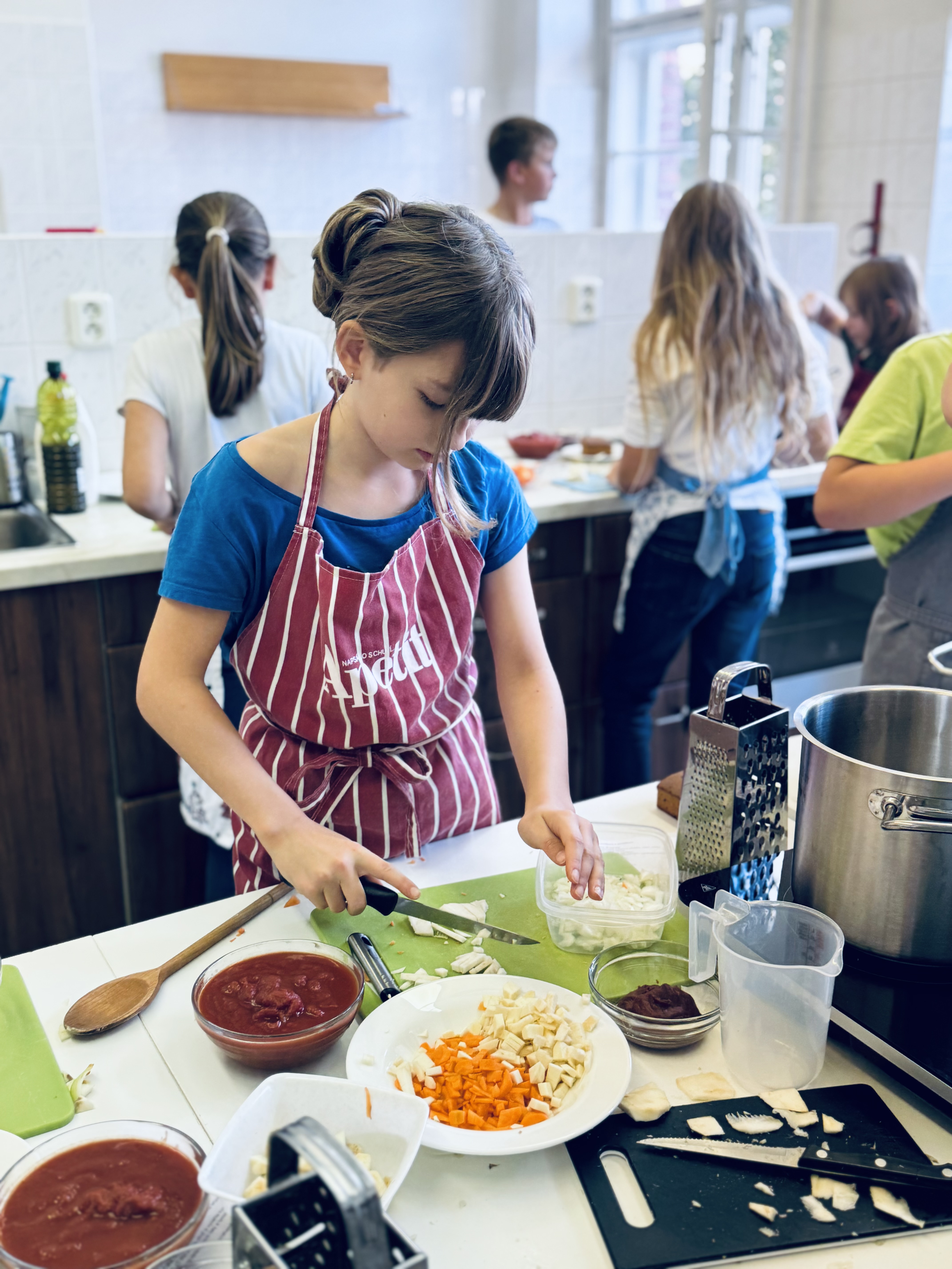 Každá lekce přináší nejen nové chutě, ale i radost z tvoření, týmové práce a objevování. Děti si vaření užívají naplno – a já s nimi. Těším se na další setkání v kuchyni a na to, co dobrého zase společně připravíme!