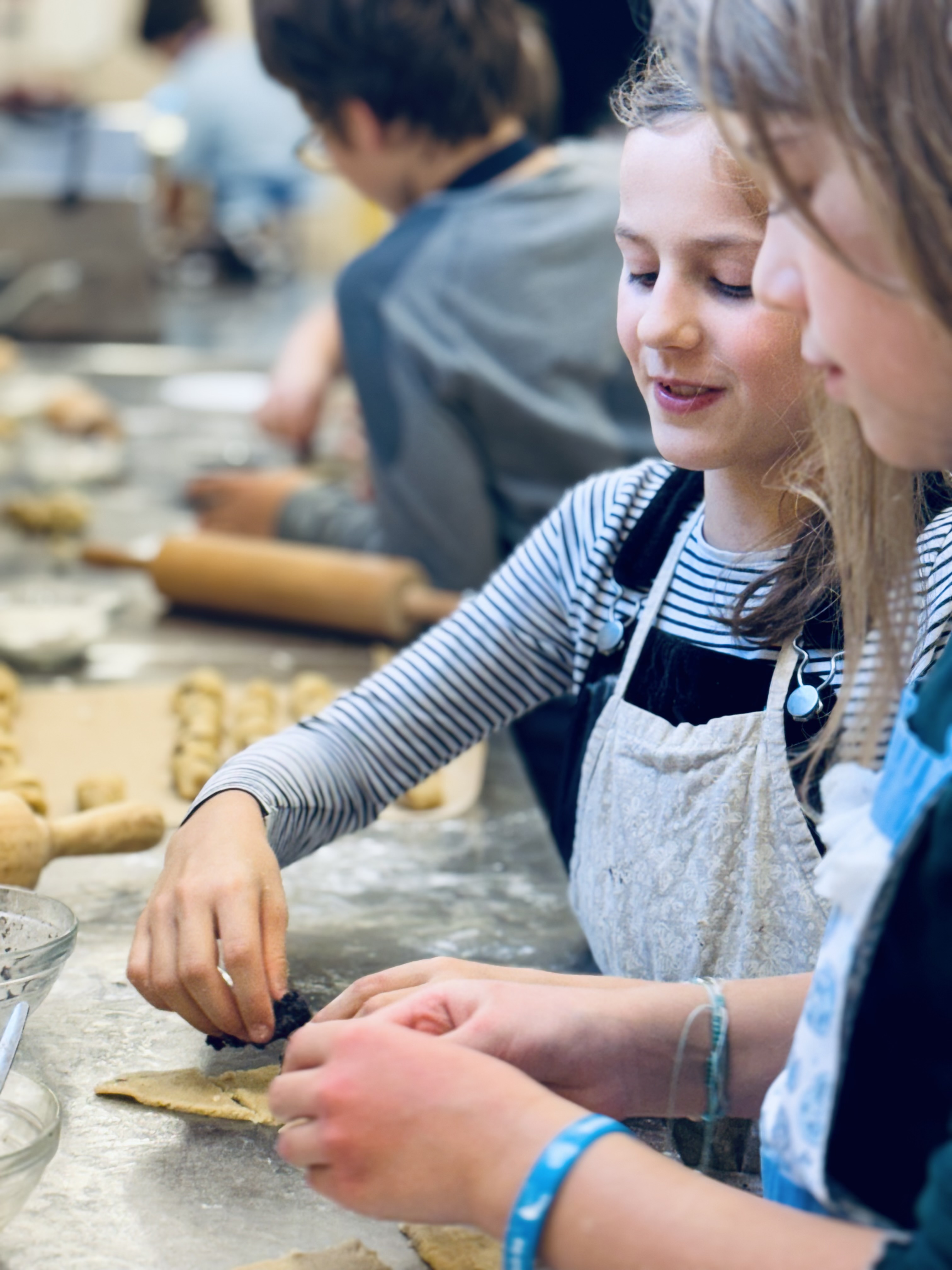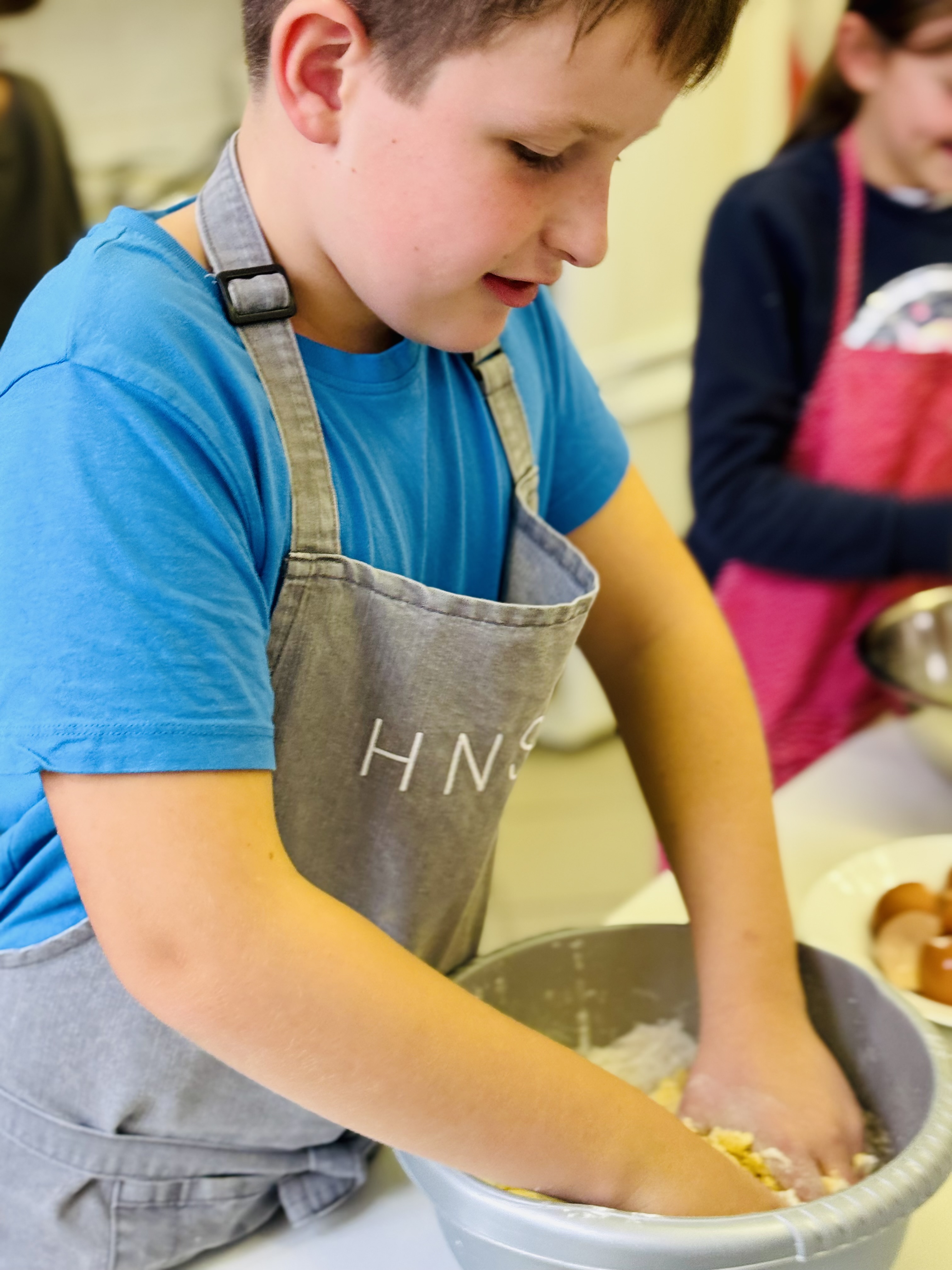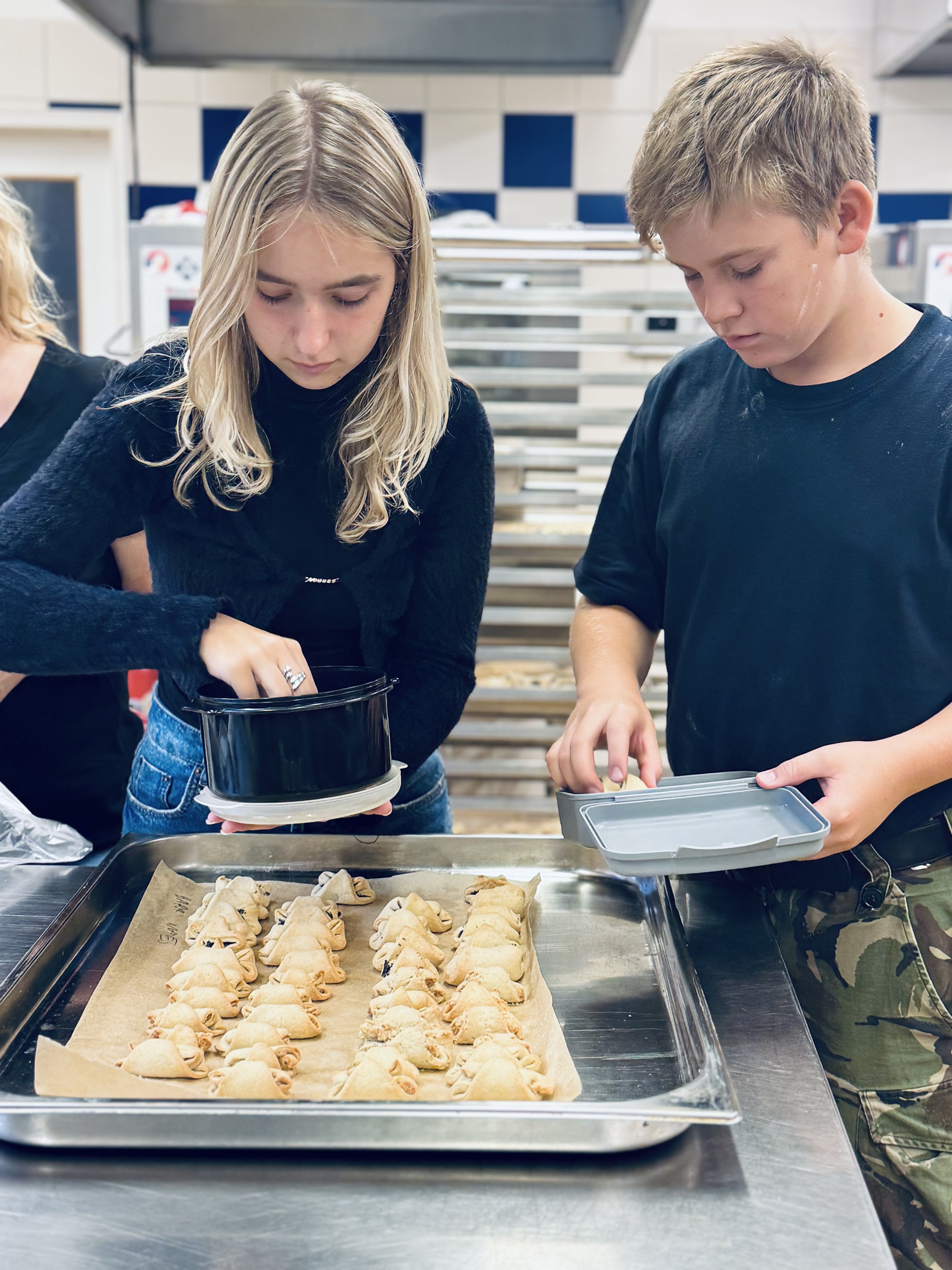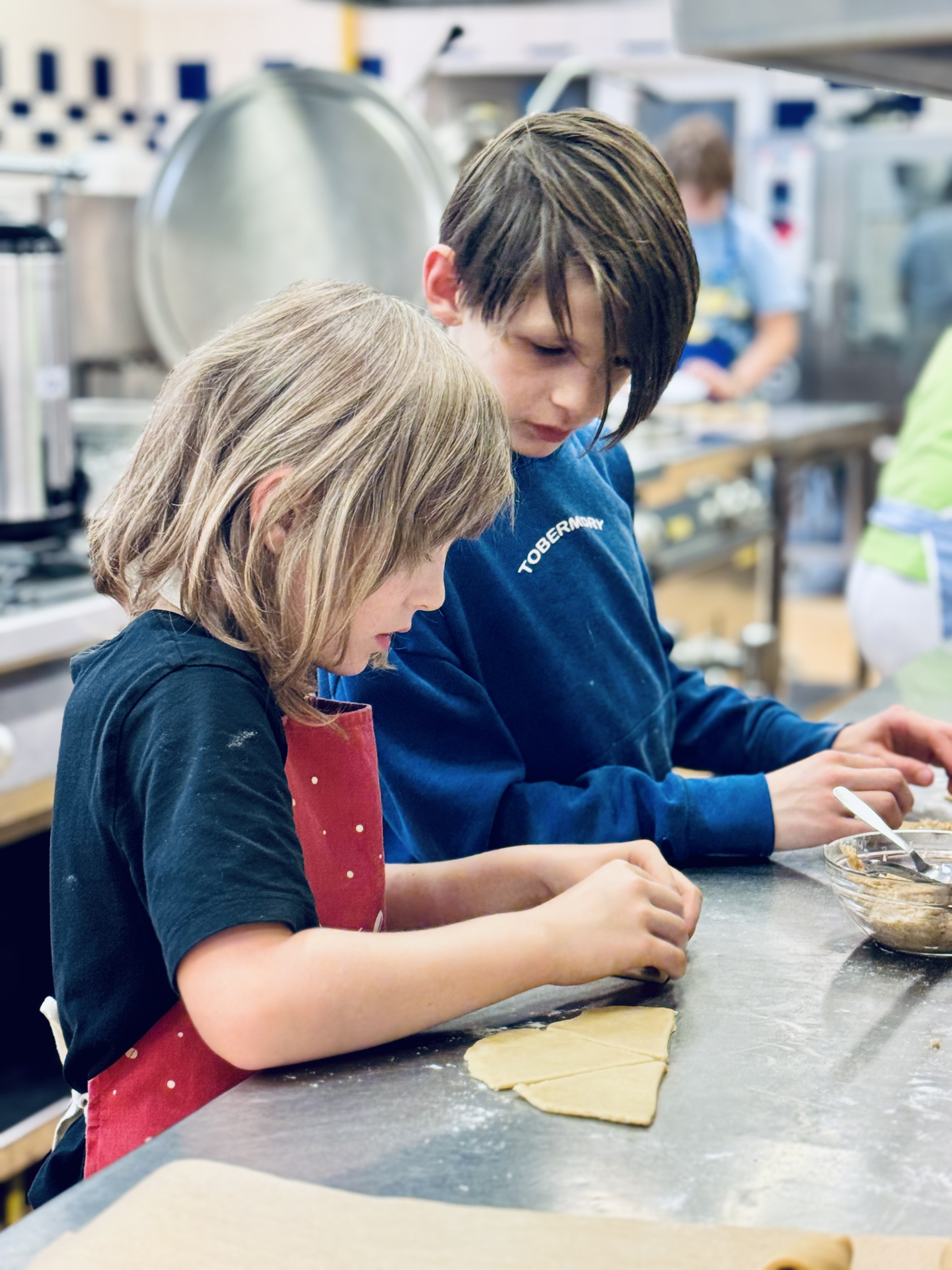 Čtvrtá lekce byla ve znamení tradice. I když se snažím každý rok zařazovat nové recepty, svatomartinské rohlíčky prostě nesměly chybět! Tentokrát jsme připravovali dvě varianty náplní – ořechovou a makovou, aby si každé dítě našlo svého favorita. Pekli jsme tentokrát ve velké školní kuchyni, kde máme přece jen více prostoru a pohodlí než v menších kuchyňkách. Děti si tak odnesly domů pořádnou dávku rohlíčků – věřím, že jste si na nich s chutí pochutnali!