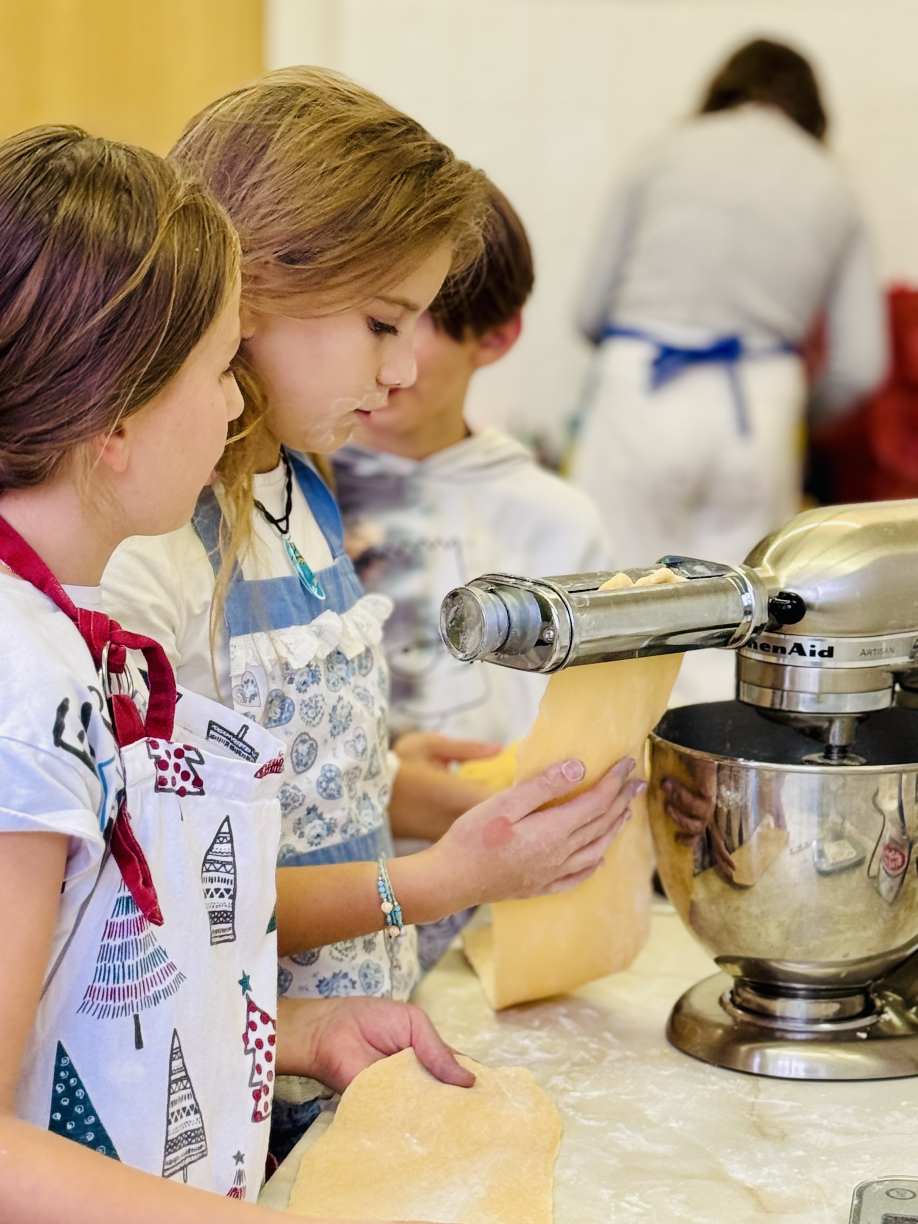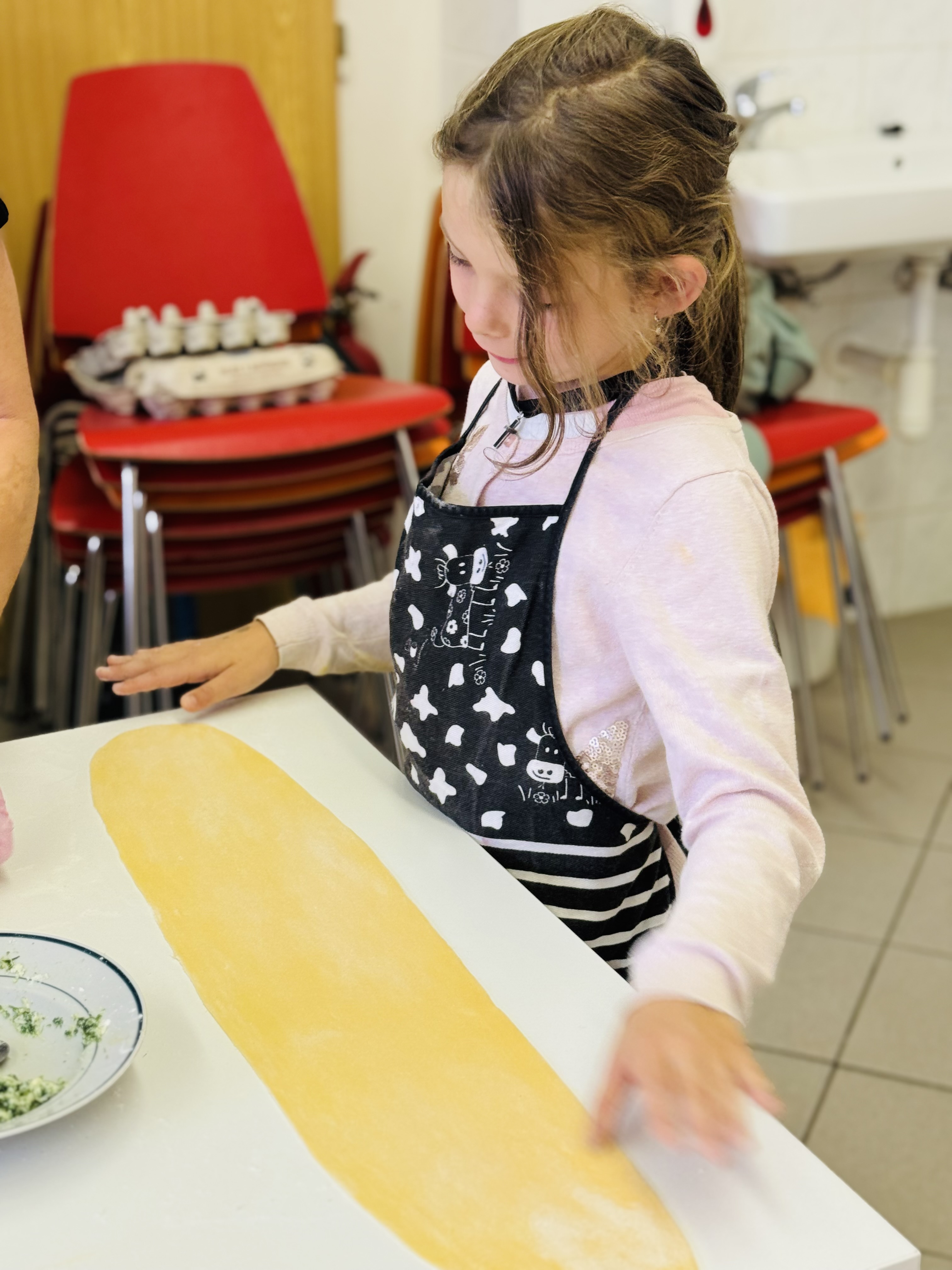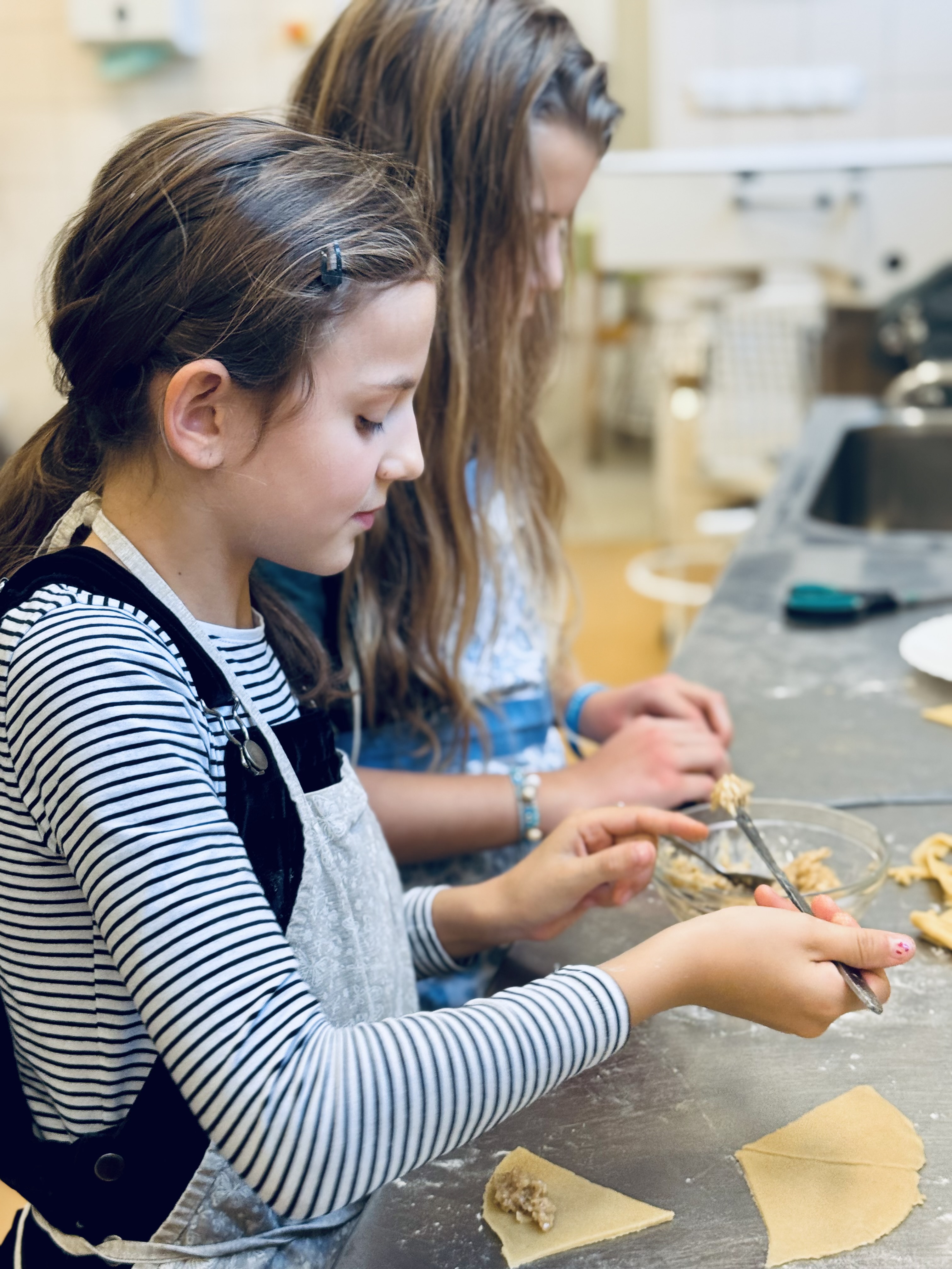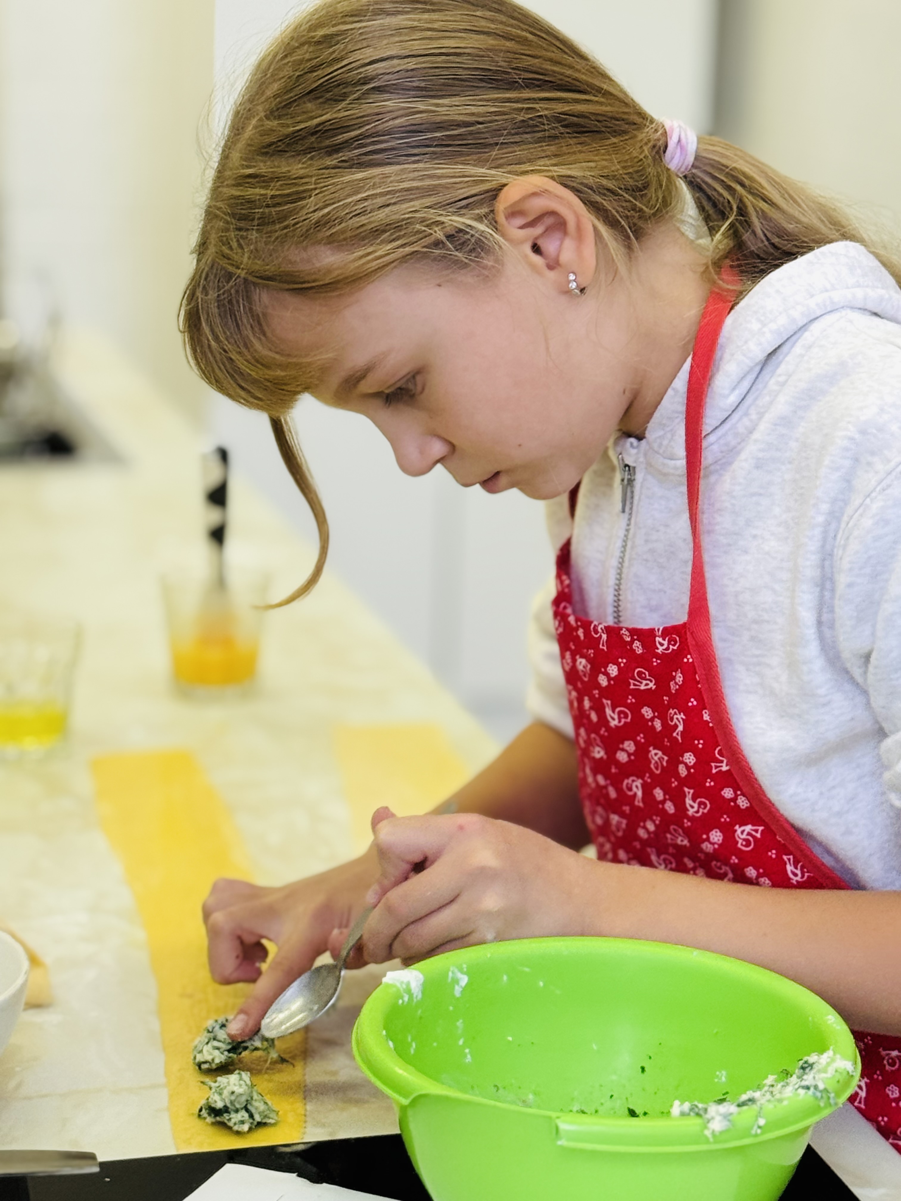 K ruce nám byly strojky na těstoviny, které jsou součástí robotů KitchenAid, takže nám práce šla krásně od ruky. Děti si vyzkoušely válení, plnění i tvarování těstovin – a výsledky stály za to!