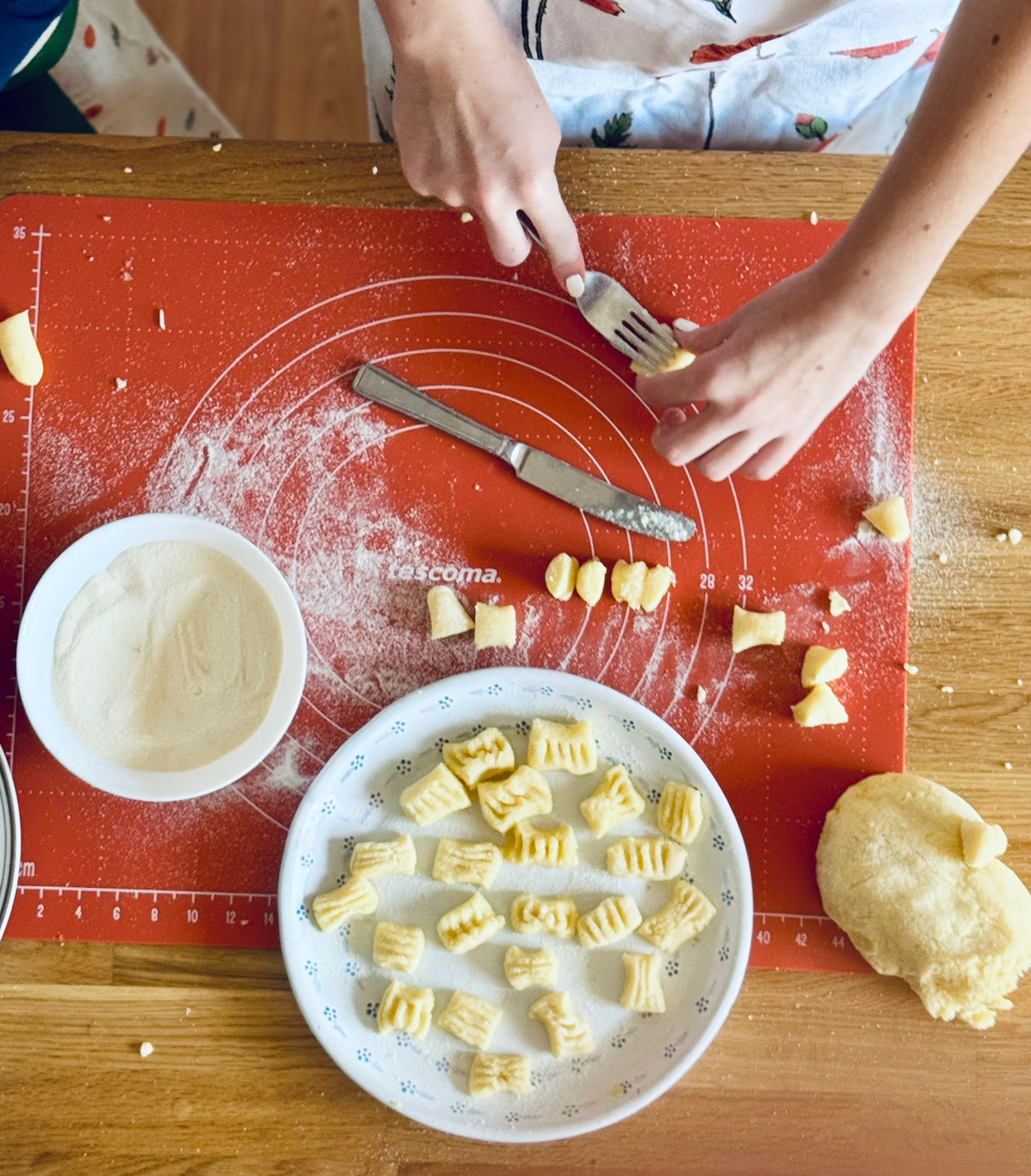 4. Z těsta děláme malé kuličky nebo válečky, které lehce přimáčkneme vidličkou.